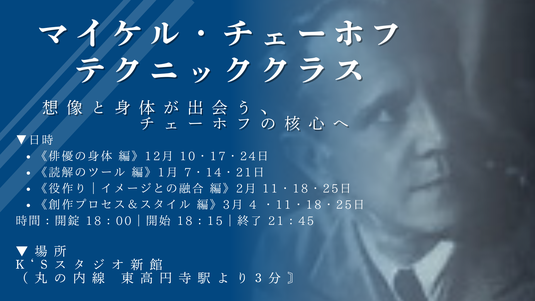 チェーホフテクニックの核を一度つかめば、生涯にわたって創造的かつ柔軟に演技へと向き合える力となるでしょう。